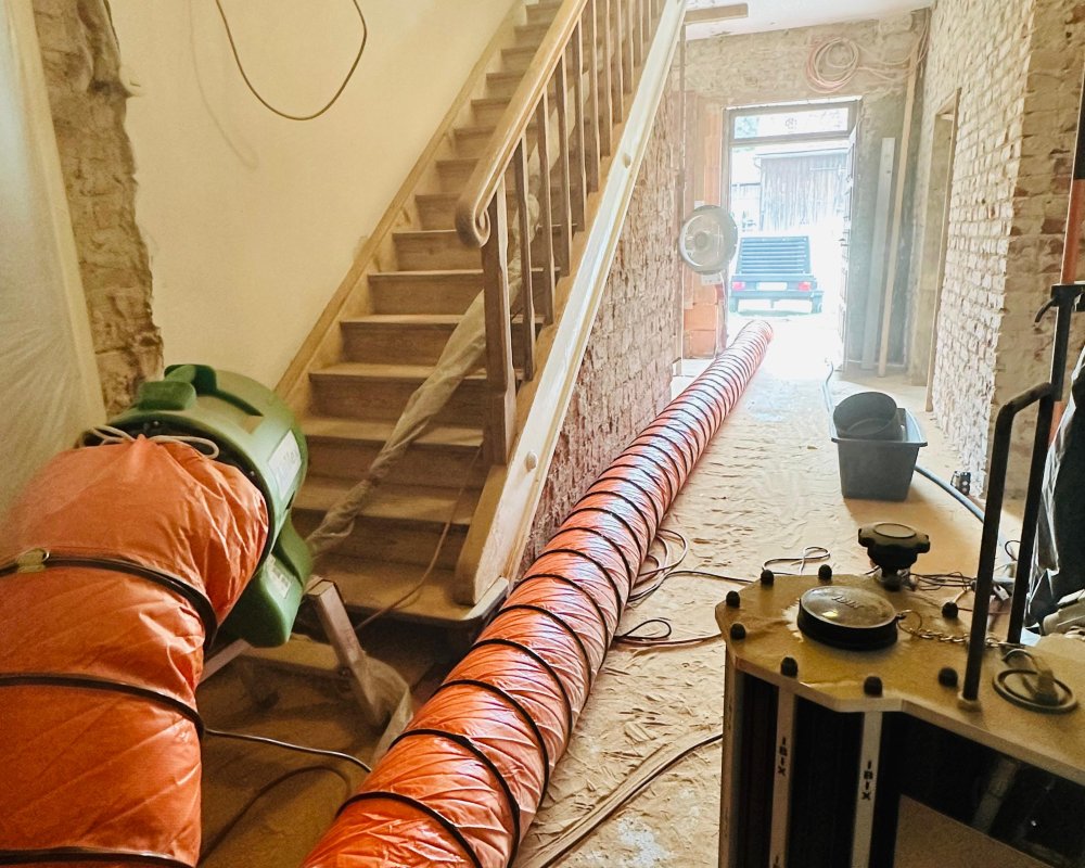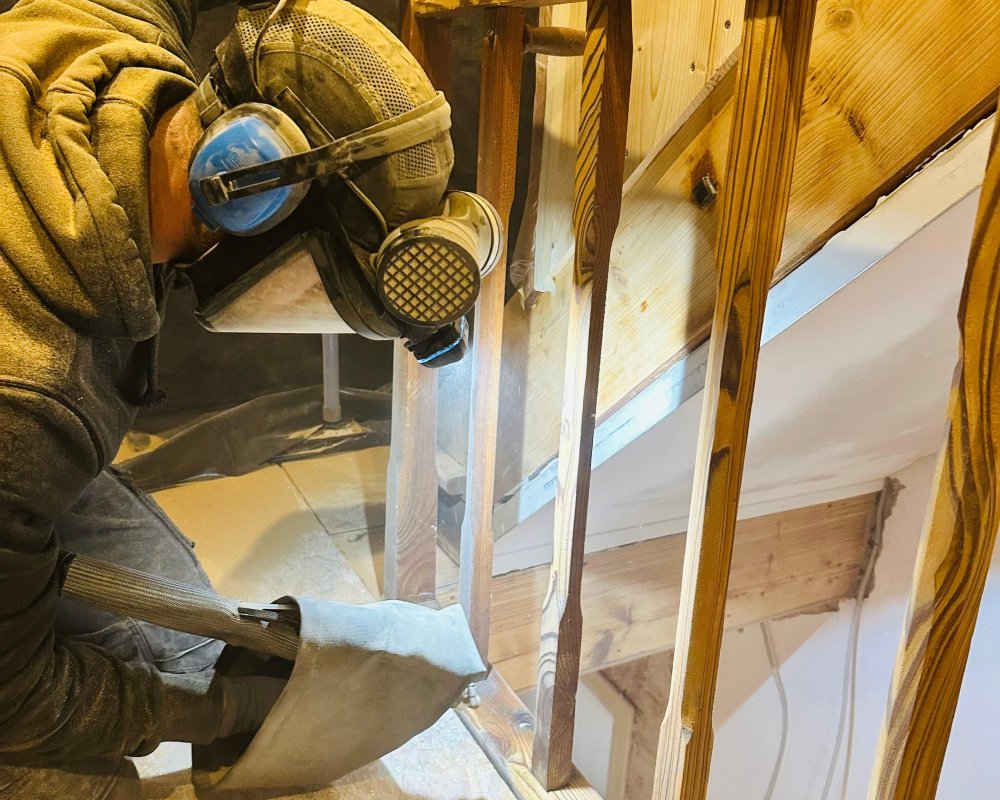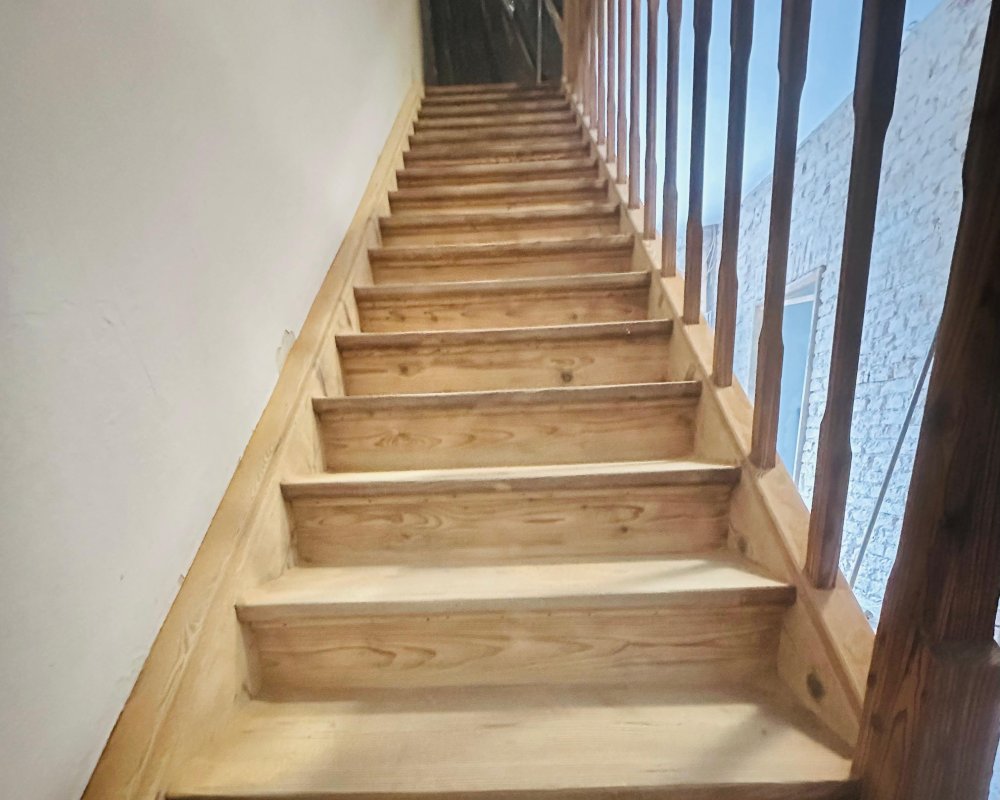 Feinsandstrahlen - Holztreppe von Lack und Schmutz reinigen