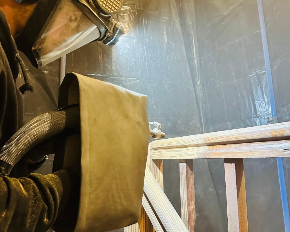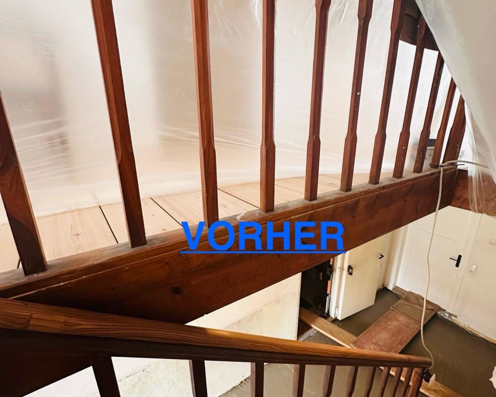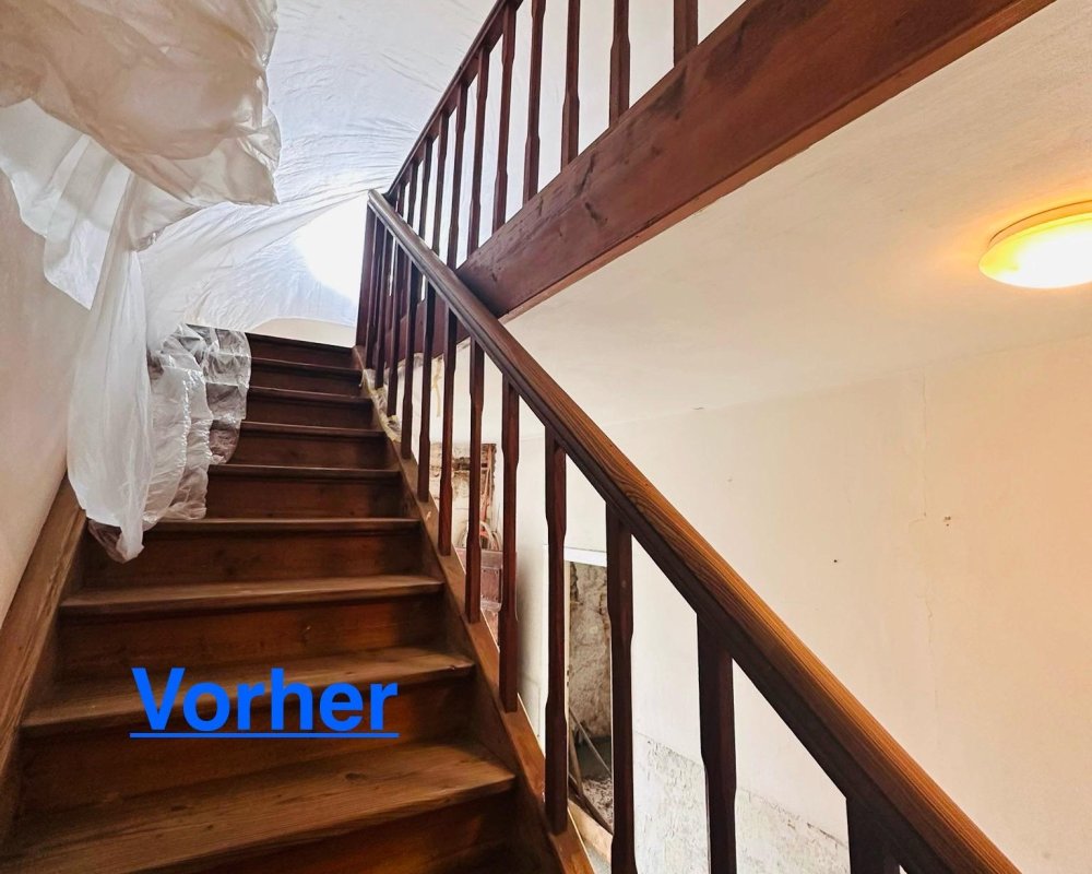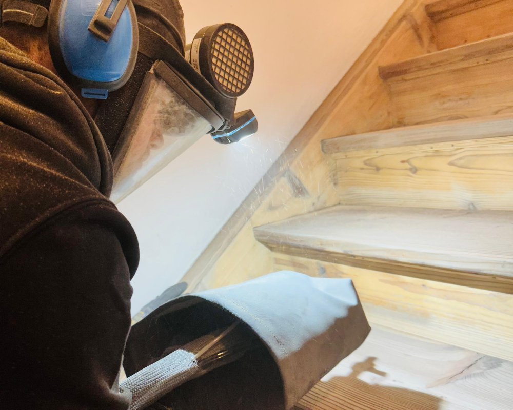 Feinsandstrahlen - Holztreppe von Lack und Schmutz reinigen